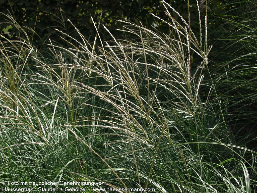 Das Niedrige Chinaschilf (Miscanthus sinensis 'Yakushima Dwarf') ist ein elegantes Ziergras, das mit seinem kompakten Wuchs und der silbrig-weißen Blütenpracht besticht. Diese winterharte Staude entwickelt eine bogige Wuchsform und erreicht eine Blütenhöhe von 100-120 cm, während die grünen Blätter etwa 60 cm hoch werden. Von August bis Oktober schmückt sich das rhizombildende Gras mit weiß-silbrigen Blütenähren, die als attraktiver Fruchtschmuck bis in den Winter hinein wirken. An einem sonnigen Standort mit frischem Boden entfaltet diese Leitstaude ihre volle Schönheit und eignet sich hervorragend als Freiflächenstaude oder Beetstaude für naturnahe Pflanzungen.