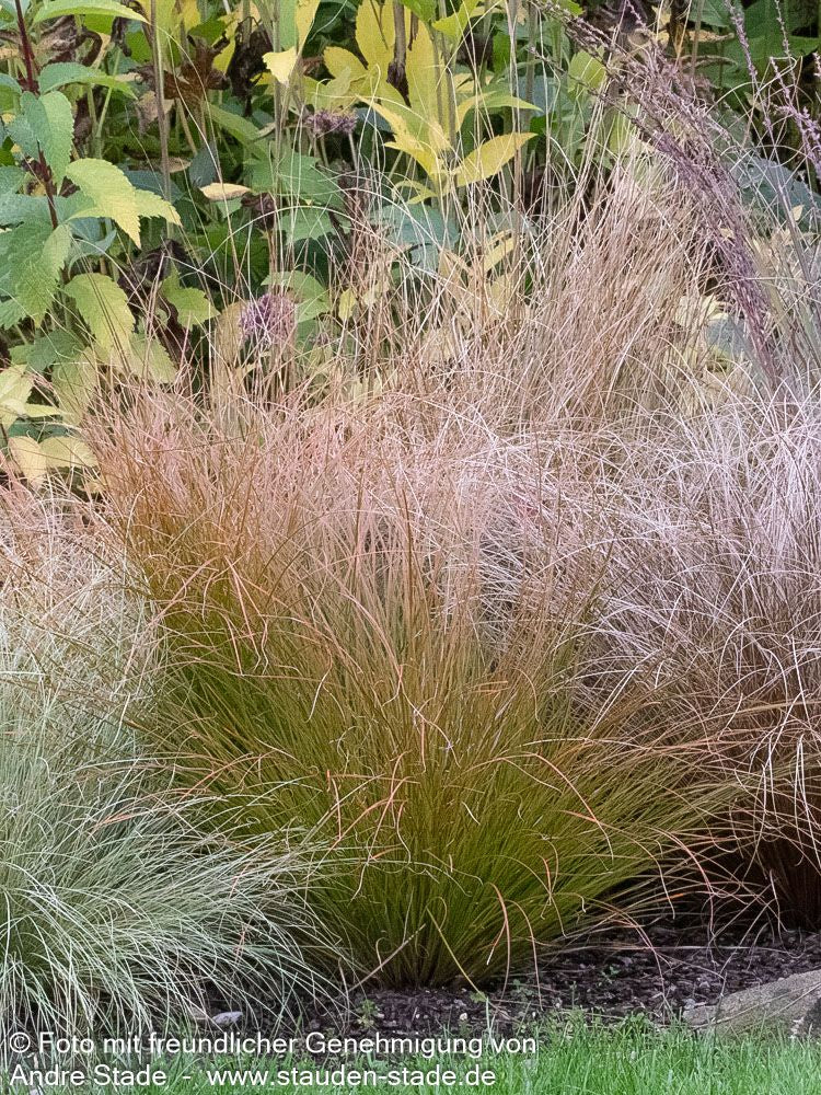 Die Orangerote Neuseeland-Segge (Carex testacea 'Prairie Fire') verzaubert mit ihrem spektakulären Farbspiel aus leuchtend orangeroten und grünen Blättern, die eine Höhe von 30-40 cm erreichen. Dieses außergewöhnliche Ziergras wurde nicht umsonst zur Staude des Jahres 2015 gekürt. Von Juni bis August erscheinen dezente braunrote Blüten, die der Pflanze zusätzlichen Charme verleihen. Als sommergrüne Staude eignet sie sich perfekt für sonnige Standorte und gedeiht hervorragend auf frischen bis feuchten Böden. Ob als Freiflächenstaude oder Beetstaude – diese neuseeländische Schönheit setzt feurige Akzente in jeden Garten.