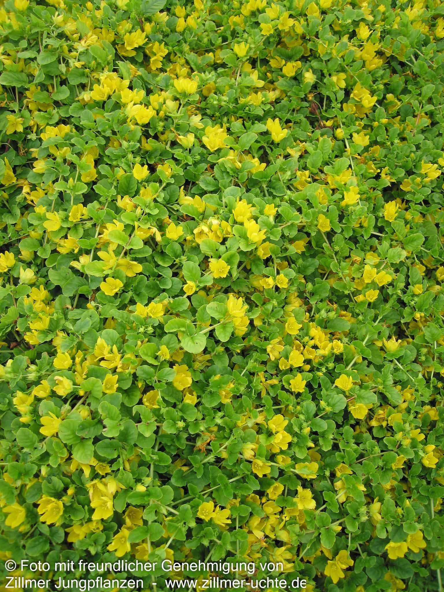 Das Pfennigkraut (Lysimachia nummularia) ist eine vielseitige heimische Staude, die mit ihren leuchtend gelben Blüten von Mai bis Juli bezaubert. Diese robuste Sternensorte entwickelt sich teppichartig und eignet sich hervorragend als kleinflächiger Bodendecker. Die hell-grünen, wintergrünen Blätter sorgen ganzjährig für attraktive Bodenbedeckung. Das Pfennigkraut gedeiht optimal an sonnigen bis halbschattigen Standorten auf frischen bis feuchten Böden und ist bis -34°C winterhart. Als traditionelle Heilpflanze bereichert diese heimische Art sowohl Gehölzränder als auch Freiflächen mit ihrer natürlichen Ausstrahlung.