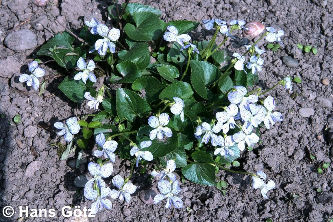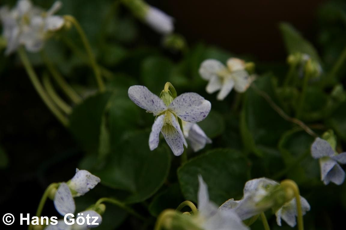 Das Pfingst-Veilchen 'Freckles' (Viola sororia 'Freckles') ist eine bezaubernde Staude mit außergewöhnlicher Blütenpracht, die von April bis Juni mit ihren weißen Blüten und charakteristischen blauen Flecken begeistert. Die kompakte, kissenbildende Wuchsform erreicht eine Höhe von 10-15 cm und macht diese winterharte Staude zu einem idealen Bodendecker für kleinflächige Bereiche. Mit ihrer Toleranz für sonnige bis absonnige Lagen und Anpassung an trockene bis frische Böden eignet sich das Pfingst-Veilchen 'Freckles' perfekt als Gehölzrandstaude und ist eine wunderbare Wahl für Pflanzungen zu Rhododendron. Die robuste Z4-winterharte Sorte entwickelt durch ihr rhizombildendes Wuchsverhalten attraktive Teppiche und sollte mit einem Pflanzabstand von 10-20 cm als Gerüststaude in Gruppen von 3-5 Stück gepflanzt werden.