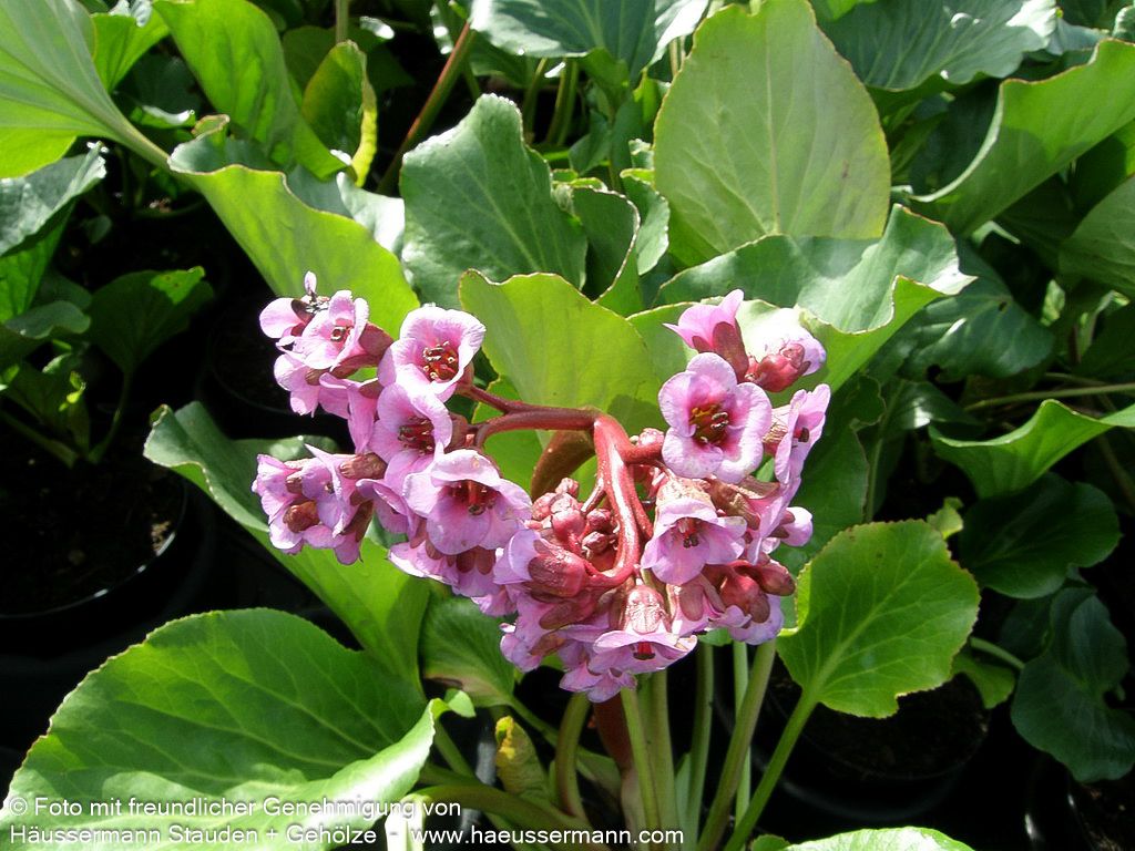 Die Purpur-Bergenie (Bergenia purpurascens) begeistert als robuste Staude mit ihren leuchtend purpurroten Blüten von April bis Mai und dem attraktiven wintergrünen Laub. Diese ausgezeichnete Staude des Jahres 2017 erreicht eine Blütenhöhe von 30 cm bei einer Blattwerkshöhe von 20 cm und entwickelt sich durch ihr kriechendes, teils wurzelndes Wuchsverhalten zu einem prächtigen Bodendecker. Als vielseitige Insektennährpflanze eignet sie sich perfekt für Bauerngärten und als Begleitstaude zu Rhododendron. Die winterharte Bergenie gedeiht optimal an absonnigen Standorten mit frischem Boden und zeigt ihre besondere Blattform und Textur das ganze Jahr über. Mit einem empfohlenen Pflanzabstand von 35-40 cm entfaltet sie ihre volle Pracht als Leitstaude in Ihrem Garten.