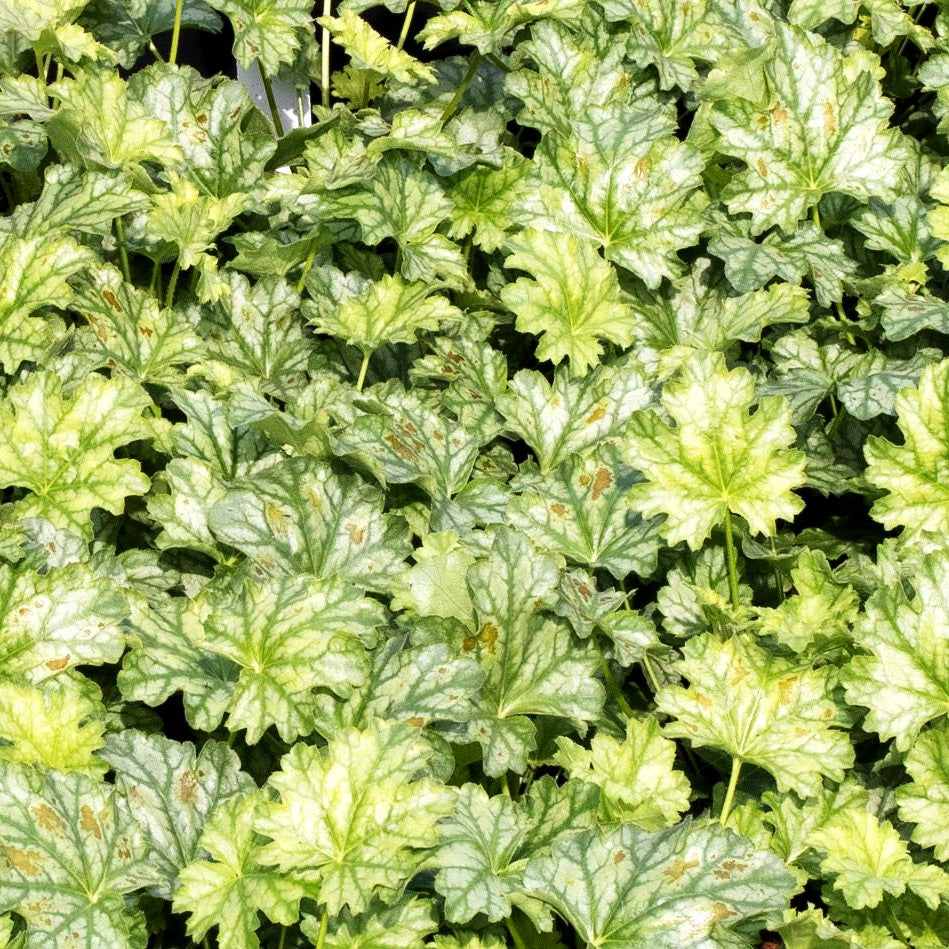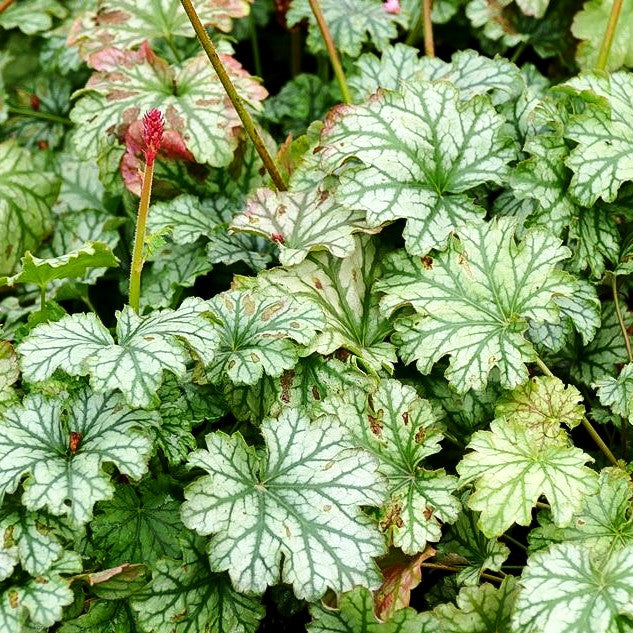 Das Purpurglöckchen (Heuchera x cult. 'Paris') gilt als eine der schönsten Blütensorten unter den Heuchera-Hybriden und begeistert von Mai bis September mit zauberhaften dunkelrosa Blüten auf eleganten 30 cm hohen Blütenstielen. Das attraktive grüne Laub mit silbriger Zeichnung macht diese Staude zu einem echten Blickfang und unterstreicht ihre besondere Blattform. Als wintergrüne Beetstaude schmückt sie Ihren Garten das ganze Jahr über. 'Paris' gedeiht optimal an halbschattigen bis wechselsonnigen Plätzen in frischem Boden und eignet sich hervorragend als Begleitpflanze zu Rhododendron. Pflanzen Sie diese bezaubernde Sorte als Gerüststaude in kleinen Gruppen von 3-5 Stück für eine besonders wirkungsvolle Präsentation.