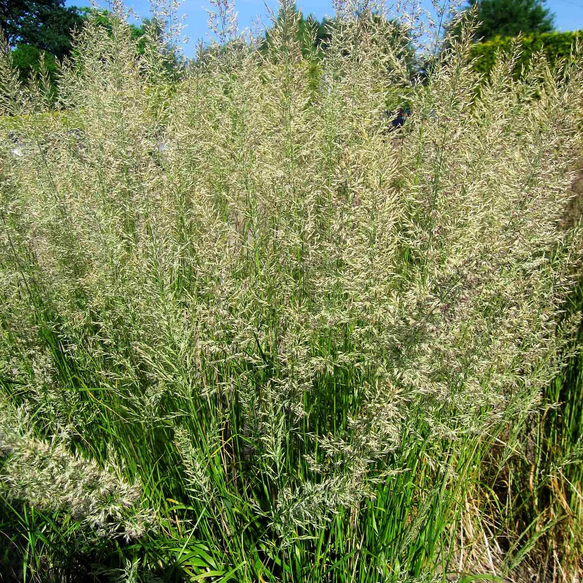 Das Reitgras (Calamagrostis x acutiflora 'Waldenbuch') ist eine beeindruckende standfeste Auslese von Züchter Karlheinz Rücker, die in jedem Garten für elegante Struktur sorgt. Dieses prächtige Ziergras entwickelt aus einem dichtbuschigen, grundständigen Blattschopf mit grünen, sommergrünen Blättern bis 100 cm Höhe aufrechte Blütenstängel, die stolze 130-150 cm erreichen.