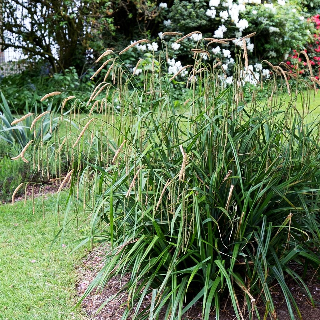 Das sattgrüne, wintergrüne Blattwerk erreicht eine Höhe von 40-60 cm und bildet einen dichten, breitausladenden Blattschopf mit bogig geneigten Halmen. Von Juni bis Juli erscheinen die charakteristischen grünlichbraunen Blütenähren, die auf 100-120 cm hohen Stängeln elegant herabhängen.
