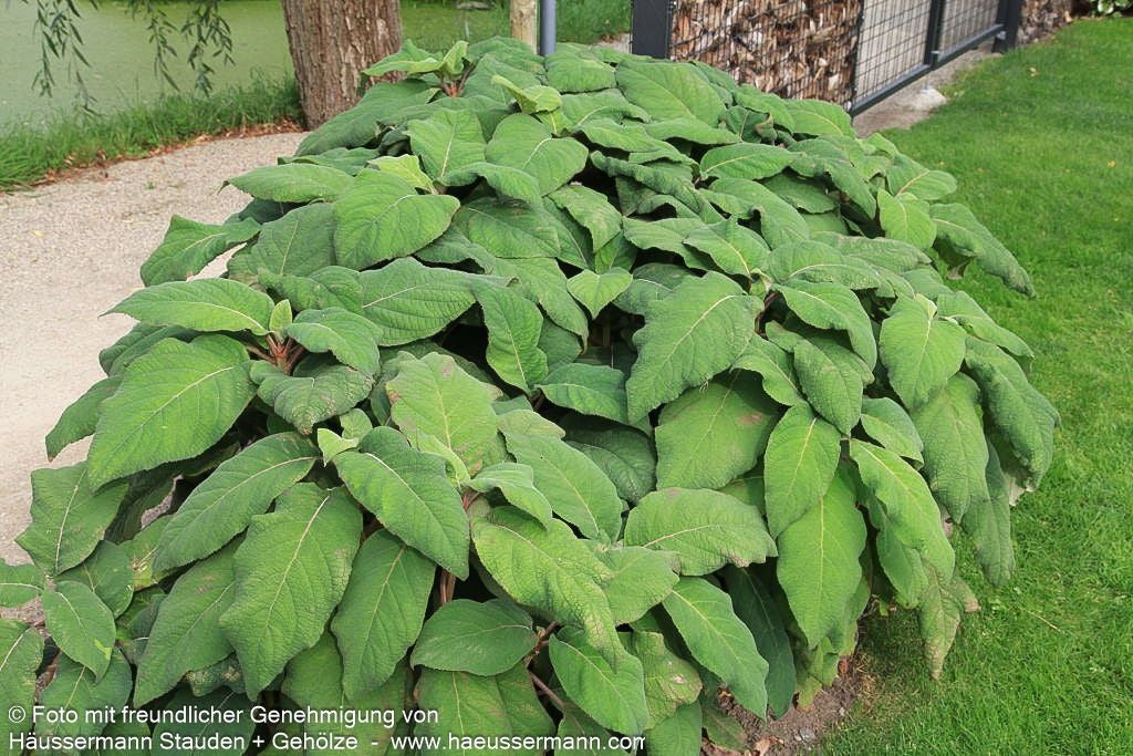 Die Riesenblatt-Hortensie (Hydrangea aspera 'Macrophylla') ist ein straff aufrecht wachsender Strauch, der mit seinen außergewöhnlich großen, bis zu 35 cm langen und rau behaarten Blättern eine faszinierende Besonderheit in jedem Garten darstellt. Von Juli bis August verzaubert dieses Laubgehölz mit prächtigen, großen rosavioletten Blüten, die von einem Kranz weißer Randblüten umgeben sind. Als mittelhoher Strauch erreicht sie eine Höhe von bis zu 2 Metern und entwickelt dabei eine breit aufrechte Wuchsform. Dieses wertvolle Gartengehölz bevorzugt halbschattige bis wechselsonnige Standorte mit frischen bis feuchten Böden. Als sommergrünes Gehölz ist sie nicht nur ein spektakulärer Blütenschmuck, sondern dient auch als wertvolle Insektennährpflanze und bereichert jeden Garten mit ihrer einzigartigen violetten Blütenpracht.