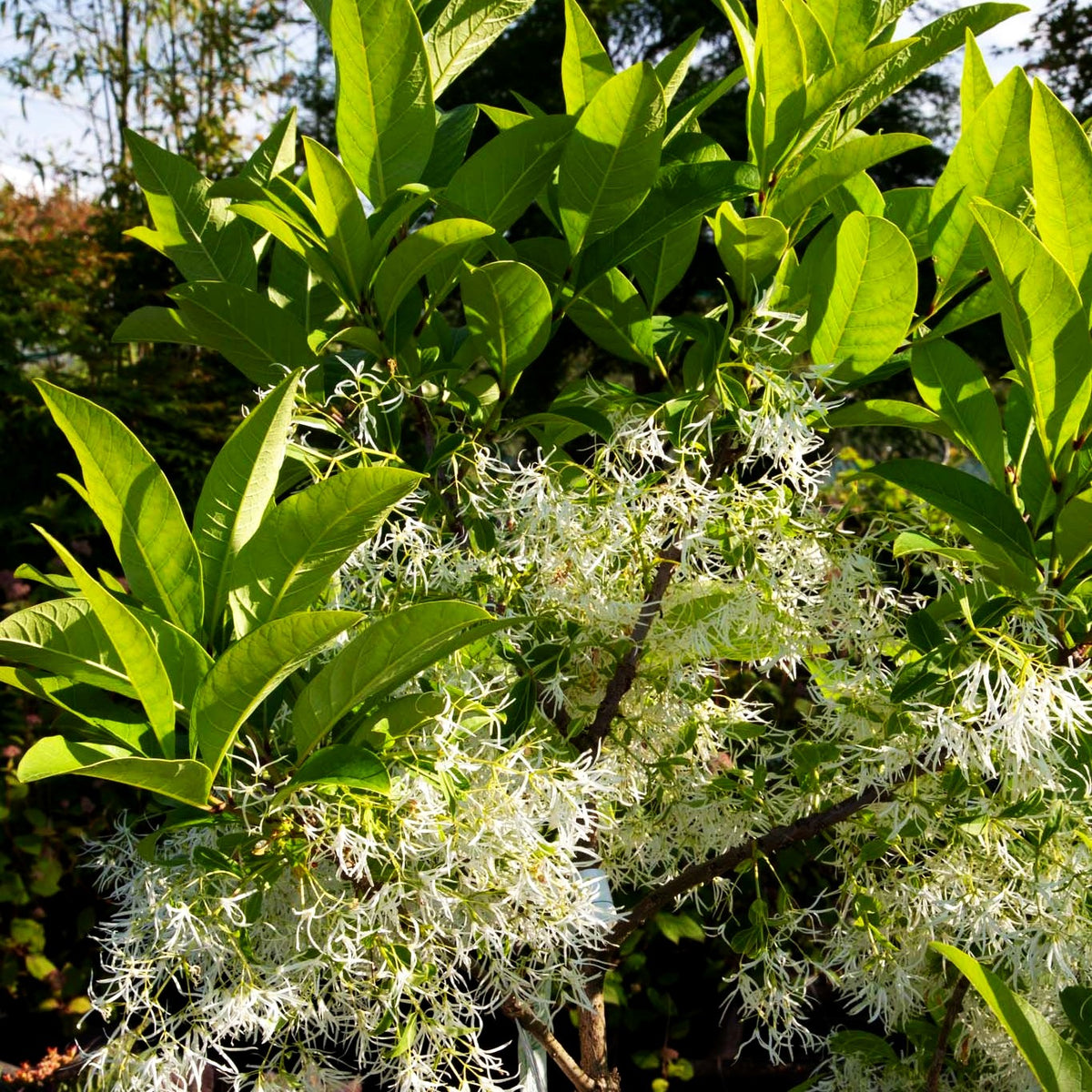 Der Schneeflockenstrauch (Chionanthus virginicus) verzaubert jeden Garten mit seinen spektakulären weißen Blütenrispen, die im Juni einen angenehmen Duft verströmen. Dieses wertvolle Gartengehölz wächst breit aufrecht und erreicht eine stattliche Größe von etwa 3 Metern in Höhe und Breite – perfekt als mittelhoher Solitär für die Einzelstellung. Das dunkelgrüne Laub dieses sommergrünen Laubgehölzes begeistert im Herbst mit einer leuchtend gelben Herbstfärbung. Der blütenreiche Strauch gedeiht optimal an sonnigen bis absonnigen Standorten mit frischen bis feuchten Böden. Ein außergewöhnliches Laubgehölz für anspruchsvolle Gartenliebhaber!
