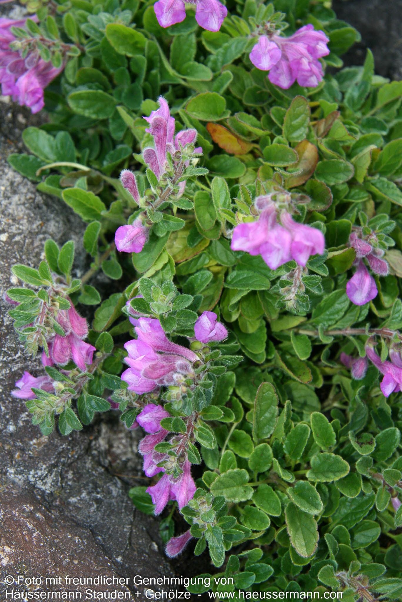 Das Schwarzmeer-Helmkraut (Scutellaria pontica) ist eine bezaubernde Staude mit violettrosa Blüten, die von Juni bis August ihre einfachen Blüten in 10-15 cm Höhe präsentiert. Diese niederliegend bis aufsteigend wachsende Pflanze entwickelt attraktive graugrüne Blätter und eignet sich hervorragend als kleinflächiger Bodendecker. Das robuste Helmkraut bevorzugt sonnige Standorte mit trockenen bis frischen Böden und ist bis -17°C winterhart. Als Leitstaude eignet es sich perfekt für Steinanlagen und Felssteppe-Bereiche mit einem empfohlenen Pflanzabstand von 20-25 cm.
