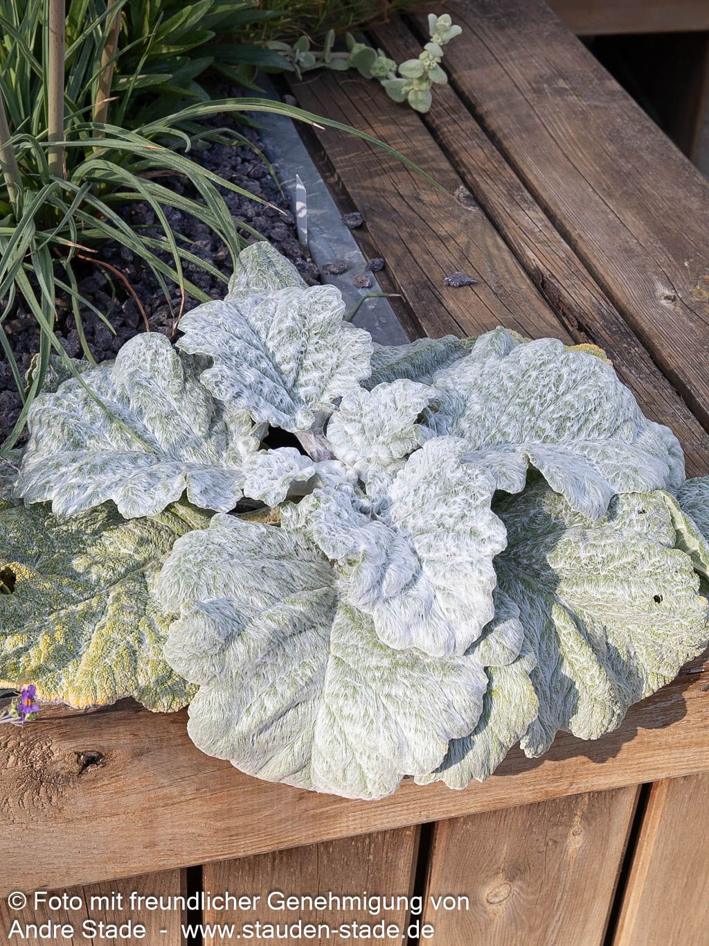 Der Silberblatt-Salbei (Salvia argentea) ist eine außergewöhnliche Staude, die mit ihren samtigen, graugrünen Blättern und eleganten weißen Blüten von Juni bis Juli begeistert. Diese Staude des Jahres 2003 entwickelt eine rosettenartige Wuchsform und erreicht eine Blütenhöhe von 50-80 cm. Der mediterrane Charme dieser Insektennährpflanze macht sie zur perfekten Wahl für Bauerngärten, Steinanlagen und Felssteppen. An sonnigen Standorten mit trockenen Böden entfaltet dieser winterharte Salbei seinen charakteristischen Blatt- und Blütenduft optimal. Als Leitstaude sollten Sie 1-3 Exemplare pro Gruppe in einem Abstand von 60-80 cm pflanzen.