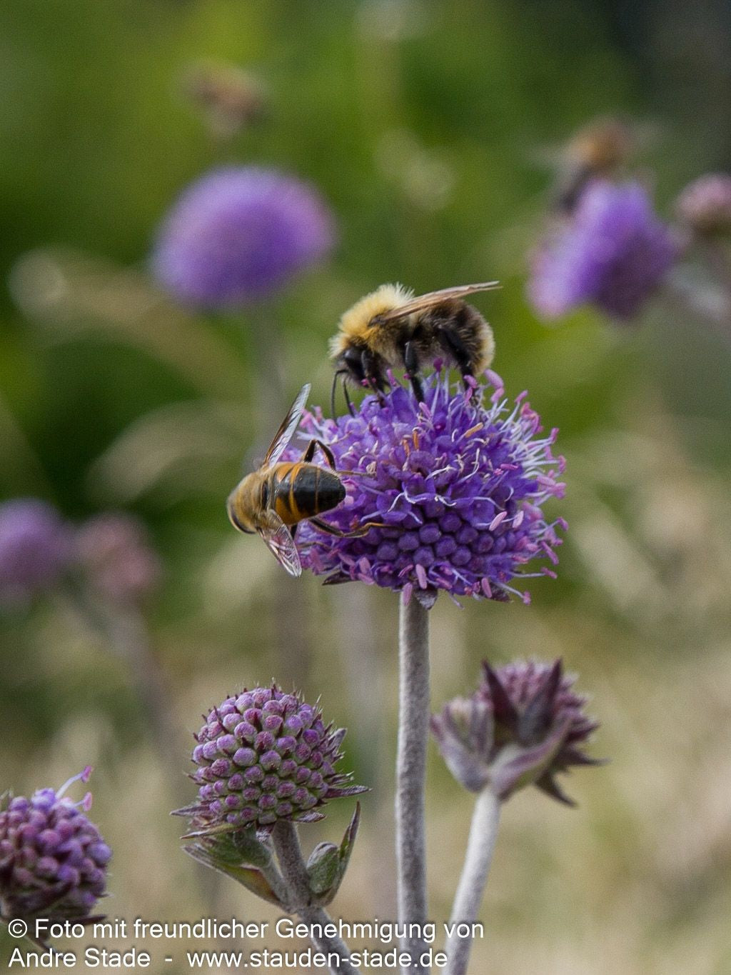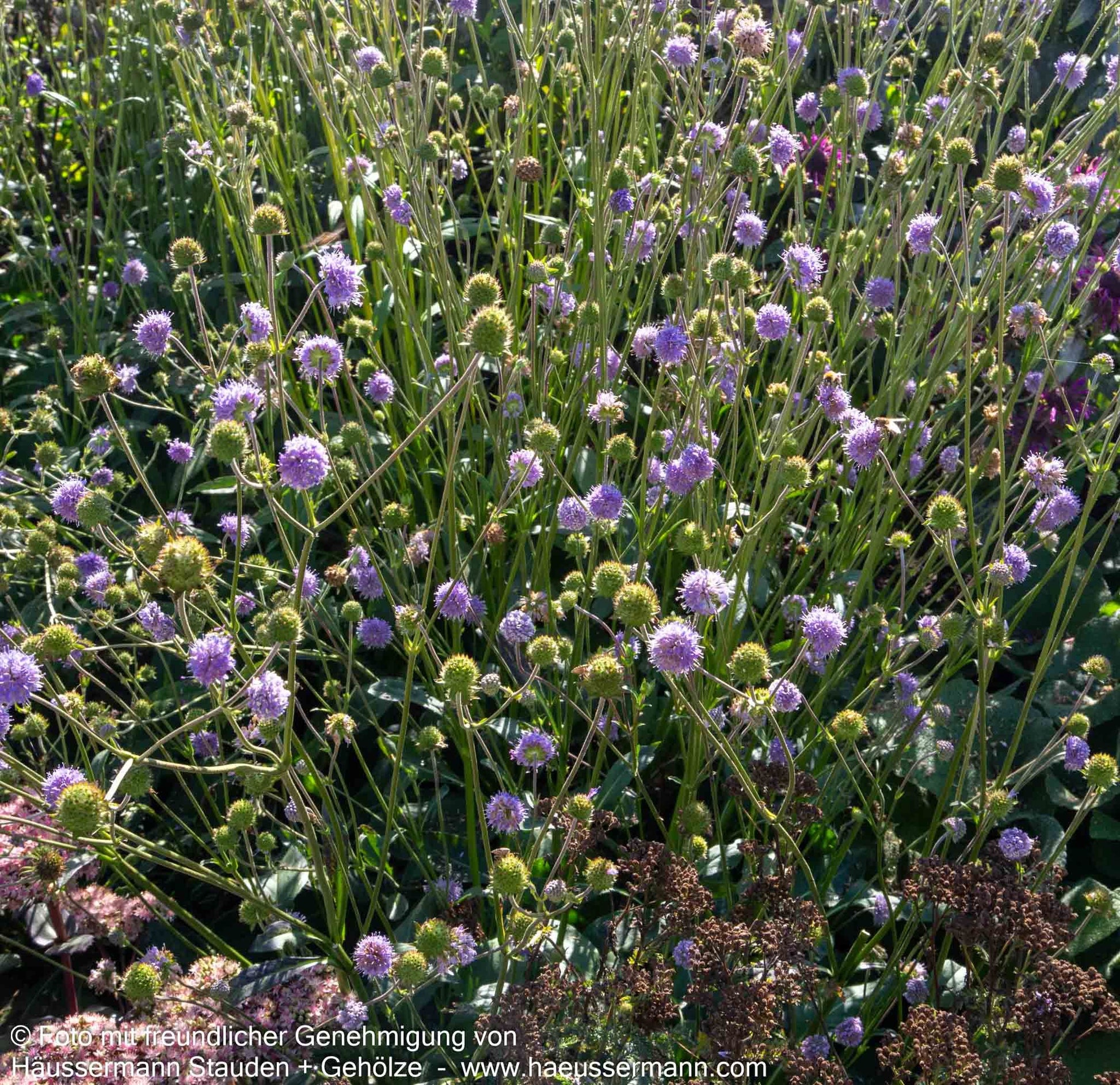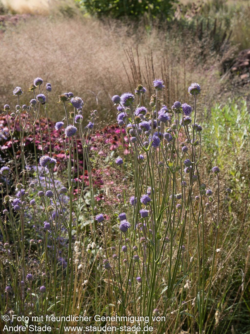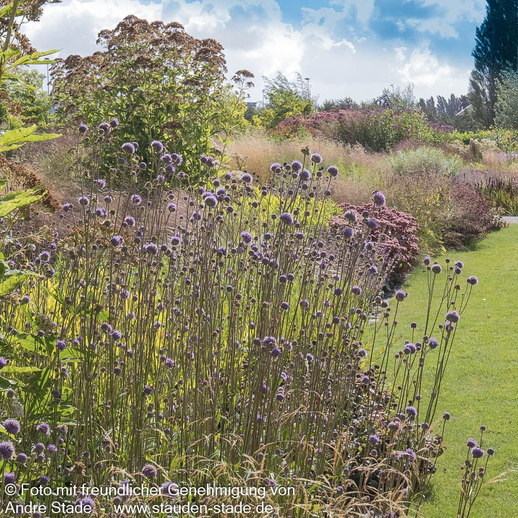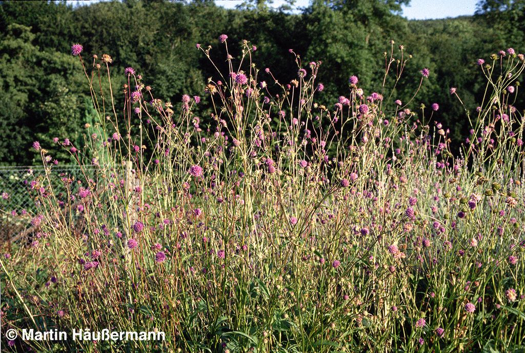 Der Teufelsabbiss (Succisa pratensis) ist eine bezaubernde heimische Wildstaude, die mit ihren blauvioletten Blüten von Juli bis September ein wahres Paradies für Insekten schafft. Diese wertvolle Insektennährpflanze erreicht eine Höhe von bis zu 80 cm und bildet mit ihren tiefgrünen Blättern eine attraktive rosettenartige Grundform. Als Heil- und Medizinpflanze mit jahrhundertelanger Tradition gedeiht diese Sternensorte optimal an sonnigen Standorten auf frischen bis feuchten Böden. Diese winterharte Staude ist als Freiflächenstaude besonders pflegeleicht und eignet sich hervorragend als Leitstaude in naturnahen Pflanzungen.