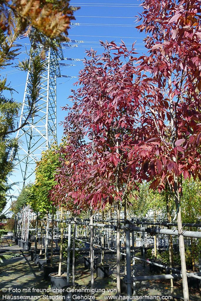 Die Weiß-Esche (Fraxinus americana 'Autumn Purple') ist ein beeindruckender mittelgroßer Baum, der mit seiner spektakulären Herbstfärbung jeden Garten in ein Farbenmeer verwandelt. Diese Laubgehölze entwickeln sich zu prächtigen mittelhohen Bäumen von 15-20 Metern und begeistern mit ihrer schmal aufrechten, kegelförmigen Jugendform, die später breit aufrecht und rundlich wird. Die unpaarig gefiederten, dunkelgrünen Blätter dieser sommergrünen Gehölze verwandeln sich im Herbst in ein atemberaubendes Schauspiel aus tief purpurroten bis mahagonibraunen Tönen - ein wahres Highlight für jeden herbstfärbenden Garten. Besonders anspruchslos gedeiht diese robuste Esche sowohl an sonnigen als auch halbschattigen Standorten und bevorzugt dabei frische bis feuchte Böden.