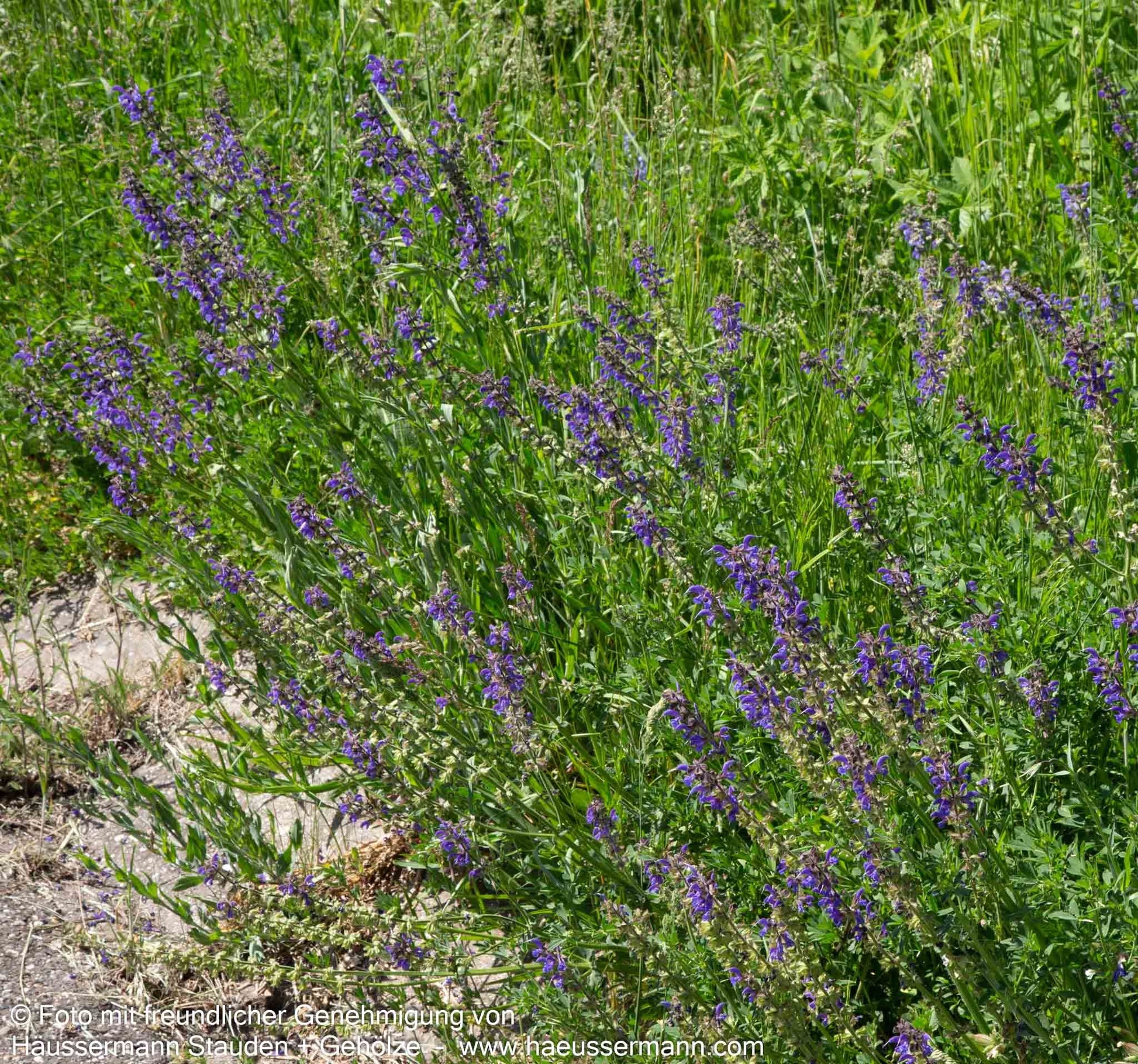Der Wiesen-Salbei (Salvia pratensis) ist eine bezaubernde heimische Staude, die von Juni bis August mit ihren violettblauen, einfachen Blüten begeistert. Diese Staude des Jahres 2003 erreicht eine Blütenhöhe von 30 bis 60 cm und entwickelt sich aufrecht bis buschig. Mit ihren dunkel-grünen Blättern und dem charakteristischen Blatt- und Blütenduft ist sie ideal für sonnige Standorte mit trockenem Boden geeignet. Als wertvolle Insektennährpflanze bereichert sie jeden Bauerngarten und gedeiht hervorragend als Freiflächenstaude in der Steppenheide. Mit ihrer extremen Winterhärte bis -39°C ist sie eine zuverlässige Gartenbereicherung.