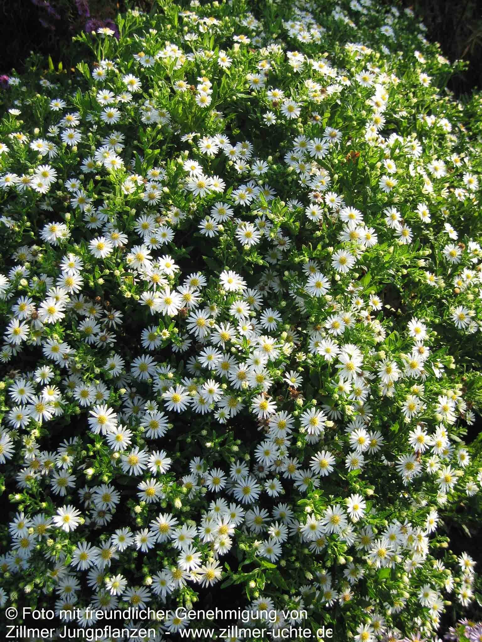 Die Wild-Aster (Aster ageratoides 'Ashvi') verzaubert mit ihren eleganten weißen Blüten von September bis Oktober und erreicht dabei eine beeindruckende Höhe von 60-70 cm. Diese prämierte Staude wurde sowohl 2002 als auch 2003 zur Staude des Jahres gekürt und begeistert mit ihrem buschigen, dichtbuschigen Wuchs. Die tief-grünen, sommergrünen Blätter bilden einen wunderschönen Kontrast zu den weißen, einfachen Blüten. Als wertvolle Insektennährpflanze und perfekt für Schnittzwecke geeignet, gedeiht sie optimal an sonnigen bis absonnigen Standorten auf trockenen bis frischen Böden. Mit ihrer Winterhärte bis -17°C ist sie eine zuverlässige Bereicherung für Gehölzränder und Freiflächen.