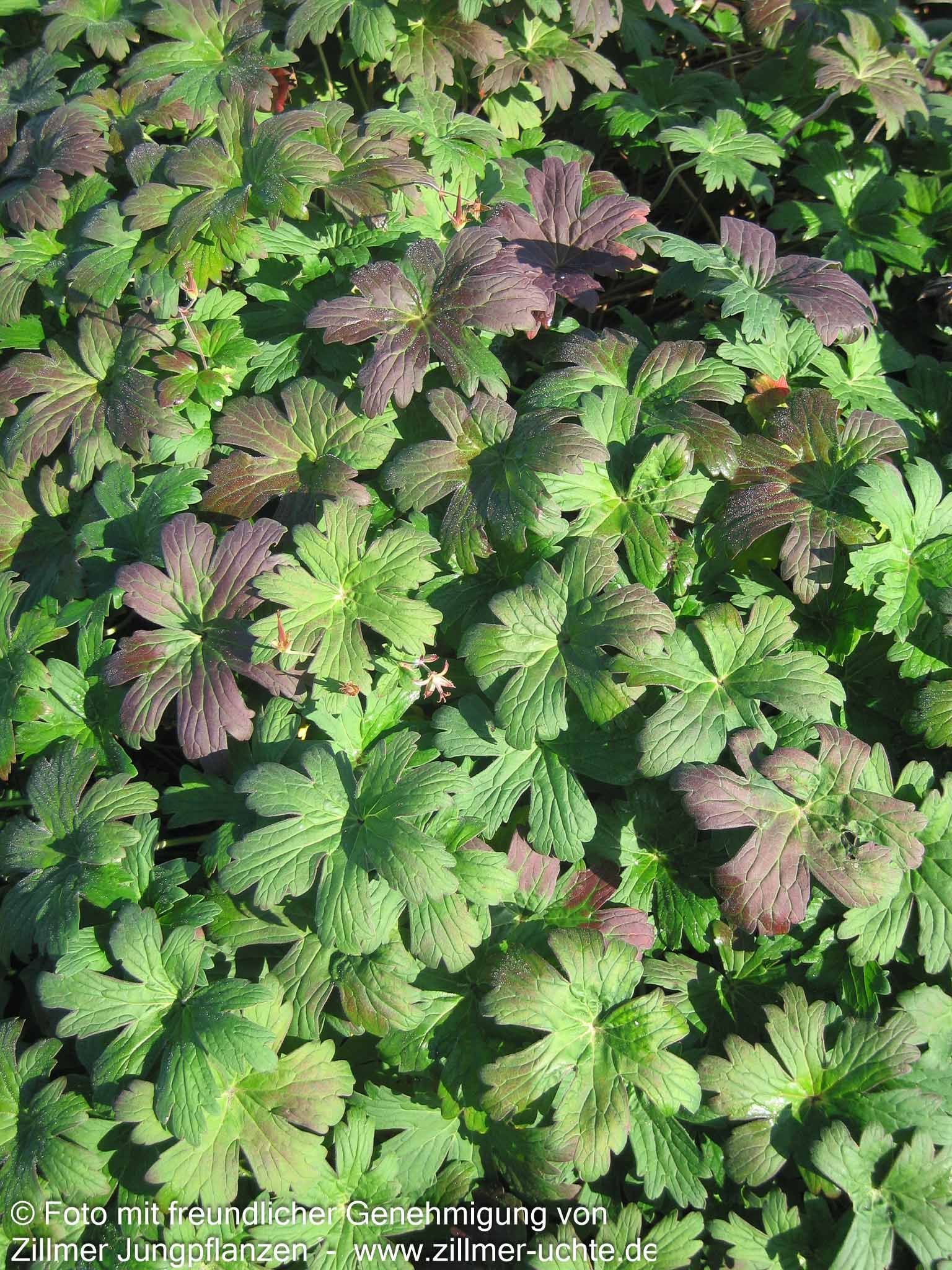 Der Wlassovs Storchschnabel (Geranium wlassovianum 'Typ Crug Farm') ist eine außergewöhnliche Staude aus Wales, die mit ihrer purpur-violetten Blütenpracht von Juni bis Oktober für monatelange Farbakzente sorgt. Diese Staude des Jahres 2004 begeistert nicht nur mit ihren einfachen Blüten auf 50 cm Höhe, sondern auch mit den dunkelgrünen Blättern, die im Herbst eine feurig orange Färbung entwickeln. Als Sternensorte der deutschen Staudensichtung überzeugt sie durch ihre besondere Blattform und eignet sich hervorragend als kleinflächiger Bodendecker. Der robuste Storchschnabel gedeiht optimal an sonnigen bis absonnigen Standorten mit frischen Böden und ist eine wunderbare Gehölzrandstaude, die sich auch perfekt als Begleiter zu Rhododendron eignet.
