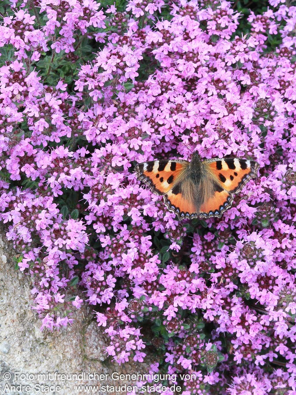 Der Wollige Thymian (Thymus praecox ssp. pseudolanuginosus) ist eine bezaubernde Duftstaude, die mit ihren rosa Blüten von Mai bis Juli jeden Garten bereichert. Diese prämierte Sternensorte wächst teppichartig und erreicht eine kompakte Höhe von nur 3-5 cm. Das graugrüne, wintergrüne Laub verströmt einen herrlichen Blatt- und Blütenduft und macht diese robuste Staude zu einem idealen Bodendecker. Der Wollige Thymian gedeiht perfekt an sonnigen Standorten mit trockenen Böden und eignet sich hervorragend für Steinanlagen, extensive Dachbegrünung und als wertvolle Insektennährpflanze.